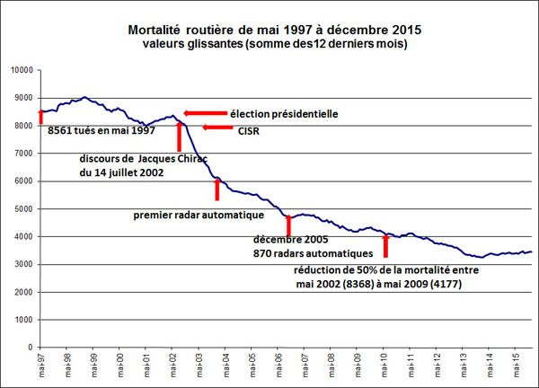 Les résultats de cette démarche organisée (en dehors du Conseil national de la sécurité routière, ce qui était une forme de lucidité au niveau du gouvernement) ont été impressionnants. Aucun pays n'a réduit la mortalité sur ses routes dans des délais aussi courts.
